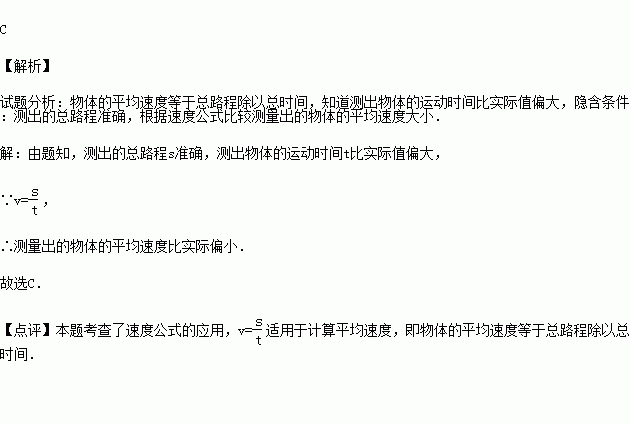 在测物体平均速度的实验中,如果测出物体的运动时间比实际值偏大,则测量出的物体的平均速度( )