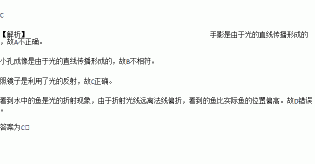 C. 照镜子--光的反射 D. 看到水中的鱼--光沿直线传