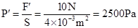 F′=G=(m水+m壶)g=(0.4kg+0.6kg)×10N/kg=10N,