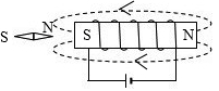 (3)在图中,标出通电螺线管和小磁针的N、S极及磁感线的方向。