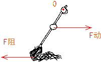 解答:如图所示:人的两只手分别握住扫把的上部和中部两点,把扫把当成杠杆,手握上部的点是支点O,手握中部的点是动力作用点,扫把与地面的接触点是阻力作用点,动力阻力方向如图所示,由于动力臂小于阻力臂,所以是费力杠杆.