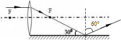 21、如图所示,一束光射向凸透镜经折射后,折射光线射到一个平面镜上.请在图中画出射向凸透镜这束入射光和经平面镜反射的光路,并标出反射角的度数.
