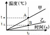 解答:解:在物体的温度-时间图象上,做一条与温度轴平行的直线,分别与甲、乙相交于A、B两点,如下图所示: