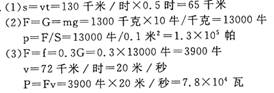 (2)“美洲豹”停在平直公路上时,轮眙与地面的总接触面积大约为0.1米2,此时对地面的压强约多少帕?
