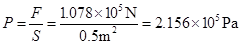 (3)运水车对地面的压力为F=G=(6×103kg+5×103kg)×9.8N/kg=1.078×105N;