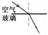 【答案】分析:根据光由空气斜射进入玻璃的传播规律:折射光线、入射光线、法线在同一平面内,折射光线、入射光线分居法线两侧,折射光线向法线偏折,折射角小于入射角,完成光路图.