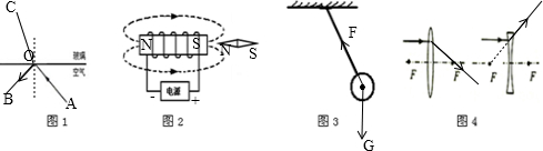 (1)如图1,画出光从空气斜射入玻璃中时,反射光线和折射光线的位置
