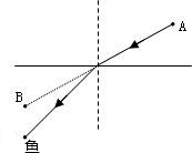 分析:根据光从空气斜射入水中,折射角小于入射角,可知人看到的是鱼的虚像,根据鱼的位置确定折射光线的方向,再根据折射时光路是可逆的来解答此题.