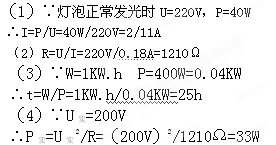 有一只标有“220V 40W”的灯泡,接在220V的家庭电路中(设灯泡电阻不变)