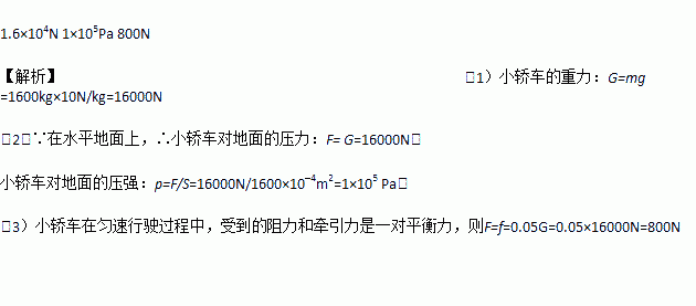 求:(1) 小轿车的重力;(g取10N/kg)