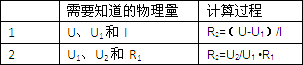 如图所示,电阻R1,和R2串联在电路中,现在要计算出R2的阻值,图中所标出的物理量中至少需要知道哪几个量?如何计算?参考表中的示例填写表格(写出两种计算方法).