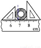 【答案】分析:本题考查特殊的长度测量方法,这是利用三角尺辅助法测量长度,看清左侧三角尺的直角对应的刻度作为起点,右侧三角尺的直角对应的刻度为终点,读出两数之差即为钢管外径;而钢管厚度可以通过作辅助线的办法粗略读出.