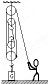 分析:人用力往下拉绳使重物升起,因此人的动力方向向下,重物运动方向向上,故有4根绳子承担物重,绳子固定在定滑轮上.