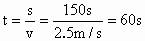 一列队伍长50m,行进速度是2.5m/s,以这样的速度通过一座长100m的大桥,这列队伍全部通过大桥所用时间________s。