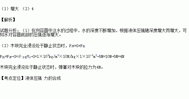 (2)木块完全浸没处于静止状态时,弹簧对木块的拉力为 N。