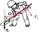(2)掀把末端的左手为动力作用点,力的方向和掀把垂直时,动力F1最小,由图知OA最长,过A点与OA垂直向下作垂线就得到动力F1的方向,如下图所示.