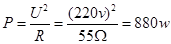 试题分析:电灯未接入电路时的灯丝电阻为55Ω,发光时温度升高电阻增大。额定功率为正常发光时的电功率,即,根据,在电阻最小时电功率最大,所以