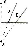 30、如图所示,A,B为发光点S射向平面镜的两条入射光线的反射光线,试找出S的位置.