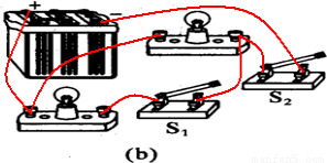 根据图(a)的电路图,在图 (b)中画出对应的实物连接图.