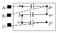 如图甲所示的电池盒,盒外有三个接线柱A、B、C;盒内有三个5号电池插槽,六个接线柱a、b、c、d、e、f;部分连接好的导线已画出,如图乙中虚线所示.选接盒外不同接线柱,可从该电池盒获得1.5V、3V、4.5V三种输出电压.请你在图乙的虚线框内,用笔画线代替导线将三节干电池(用元件符号表示)连接起来,组成一个符合实际的电源,并满足下列要求:![]()