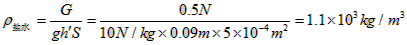 (2)当向水中撒入一些食盐并搅拌均匀后,玻璃管向上浮起0.01m,此时食盐水的密度多大?(ρ水=1.0×103 kg/m 3,g取10 N/kg)