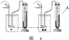 【答案】分析:在实验室中我们是利用U形管压强计来研究液体内部压强大小的;影响液体内部压强的因素有液体的密度和深度,图a中是在控制密度相同的情况下,探究与深度的关系,这是控制变量法的运用.而图b中则是控制深度相同,探究与密度的关系.
