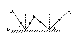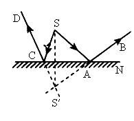 A、B、C、D是同一光源S发出的经平面镜MN反射后的两条光线,请找出S的位置,并完成光路图.![]()