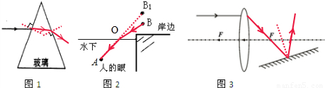(3)作出折射光线要根据平行于主光轴的光线经凸透镜折射后折射光线通过焦点来作;作出反射光线要根据反射定律:反射光线、入射光线、法线在同一个平面内,反射光线与入射光线分居法线两侧,反射角等于入射角来作.