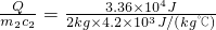 由比热公式变形可得:△t2=