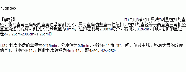 如图所示,测得一枚纽扣的直径是______cm; 秒表的读数为_____s。