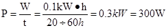 所以当指示灯闪烁300次时,消耗的电能为:![]()