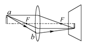 如图所示,蜡烛经凸透镜成清晰的像在光屏上,请画出入射光线ab经透镜后的出射光线,并确定透镜焦点的位置(保留作图过程).