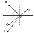 如图,小明站在水池边A处,看到路灯B在池水中的像与他看到的池中一块鹅卵石在C点重合,请用作图法确定B的位置和鹅卵石的大致位置。![]()