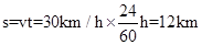 (3)小明早晨7点乘校车去上学,7点24分到达学校,设小车行驶的平均速度为30km/h,则小明乘车地点到学校的路程是 km.