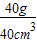 V=60cm3-20cm3=40cm3液体的质量m=100g-60g=40g,
