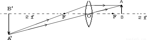 点评:此题主要考查了凸透镜成像规律中的成缩小、倒立实像的情况,同时考查了三条特殊光线的画法,是中考考查的热点问题.