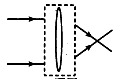 根据图中入射光线与出射光线的方向,在虚线框内画出适当的透镜。