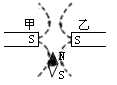 如图所示,小磁针处于静止状态,请在图中甲、乙处标出磁极极性(用“或S表示)并画出磁感线(每个磁极画两条).