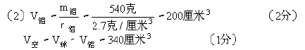 使质量为540克的铝球能悬浮在水中,求:(1)铝球的体积应是多大?(2)球内中空部分的体积多大?