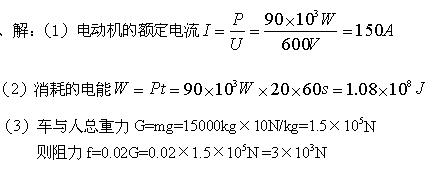 某次搭载乘客时车与人的总质量为15000Kg,假如车的在额定功率下以20m/s的速度沿水平路面匀速行驶20min,所受阻力为车与人总重力的0.02倍,g取10N/Kg.求: