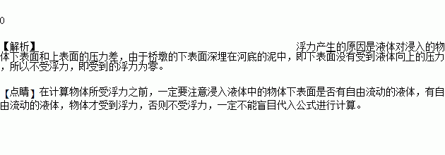 一座重5t的桥墩,浸入水中 10 m,则桥墩受到的浮力为_______N。