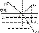 (1)A1发出的光经水面反射进入人眼的光路图