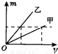 如图所示的甲、乙两种物质的质量--体积图象,由图象可知( )A.ρ甲>ρ乙