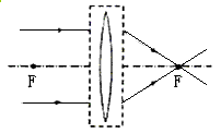 在图中,根据入射光线和折射光线,在方框内填入一个适当类型的透镜。