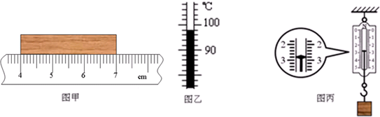 将图中三种测量仪器的测量结果(数值和单位)填写在下列相应的空格中