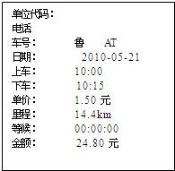 N,行驶时受到的阻力为车重的0.1倍.图式他达到目的时的乘车发票.通过计算回答:
