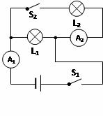 D.闭合S1、S2时,L1、L2串联,A1、A2示数相等 |