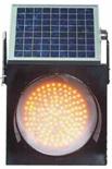 细心的小梅发现.济南的有些路口安装了带有太阳能电池板的警示灯.如右图所示。白天,太阳能电池板将__ ___转化成电能并储存起来;用__ __材料制作的LED灯日夜发光提醒着人们注意交通安全。