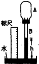 某学习小组的同学自制了一个简易温度计,A为一塑料瓶,B为吸管,通过软木塞与A相连,管下端插入水槽中,使管内外水面有一高度差h,在不同温度下分别测出对应水柱高度h,记录数据如下表:
