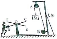 在物理综合实践活动中,小华设计了如图所示的机械模型.推动硬棒CD或EF,使它们在水平面内绕轴O转动,即可将绳逐渐绕到轴O上,提升重物G.硬棒CD是________力杠杆,滑轮B________(能/不能)改变力的大小.在重物上升的过程中,轴O上增加的绳长________重物上升的高度.